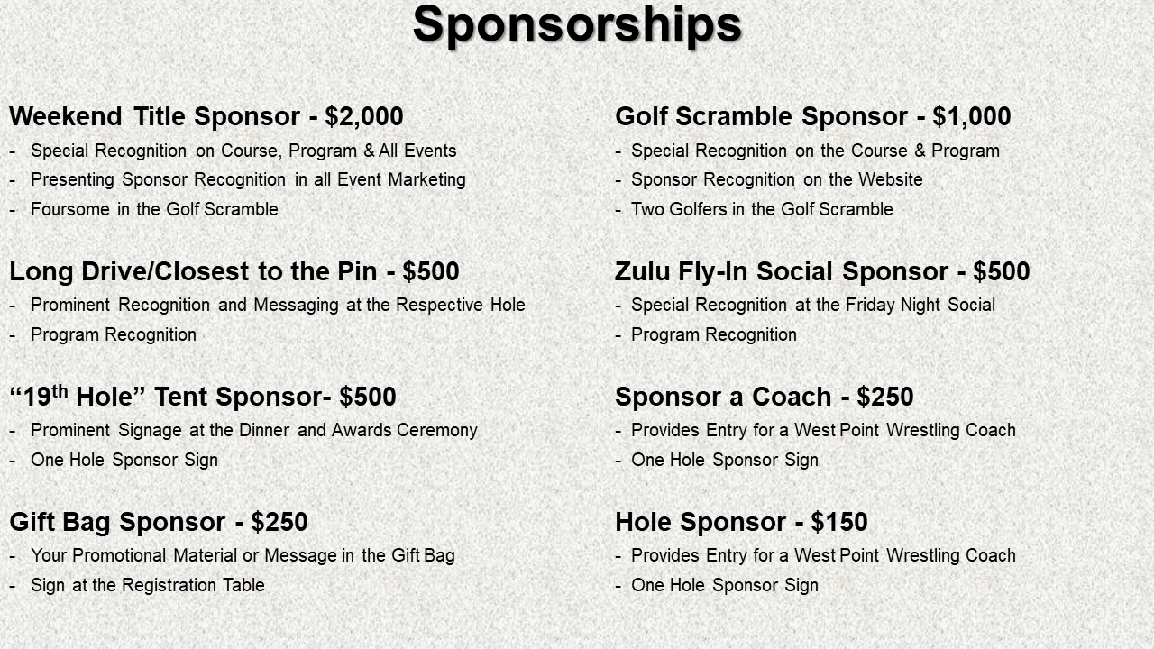 Our Wrestling Parents are raffling a custom Army West Point Wrestling Cooler with a retail value over $500. Tickets may be purchased at the Golf Scramble or at the Parent’s Weekend Tailgate. The winning ticket will be selected on October 28th at the tailgate. If you can’t attend either event, contact Phil Pack for ticket information - phil.pack@mac.com.