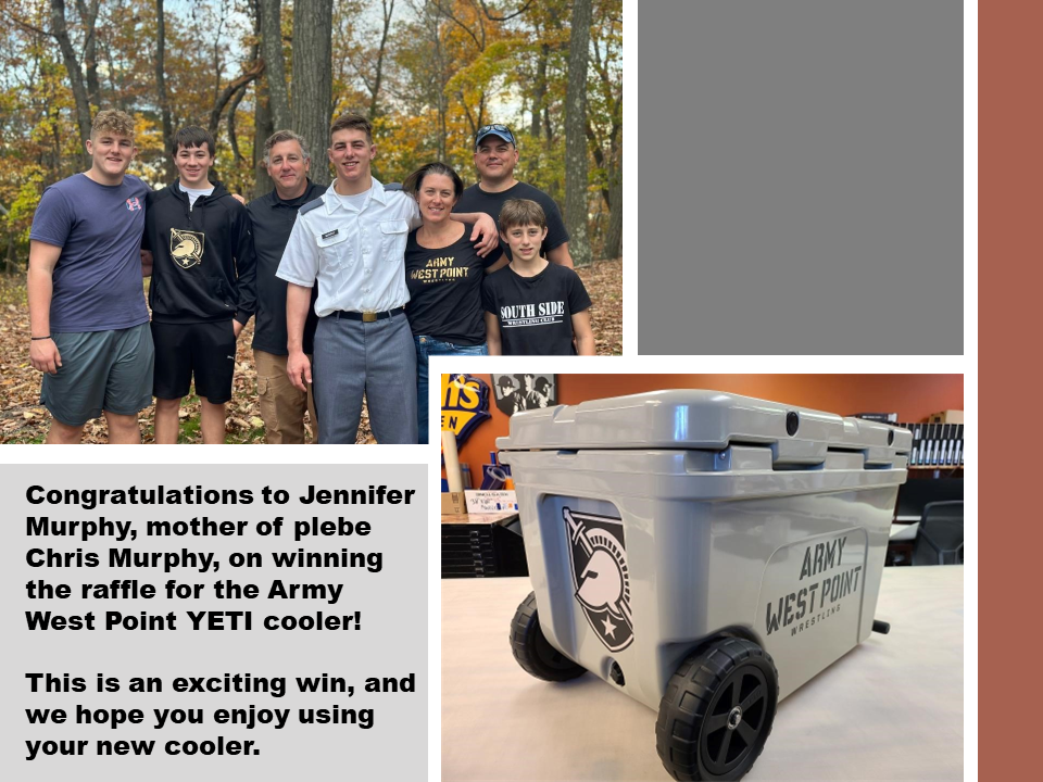 Special thanks to the Class of '26 families for the cooler and Branham Sign Company for the Army West Point Wrestling customization.
